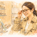 セルロイドのフレームなので丈夫で変形しにくく、チタンパットで錆びにくく傷みにくいと機能面でも安心ですね。